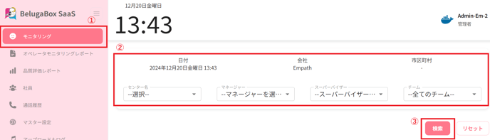 1. 左側のメニュー欄から「モニタリング」を選択します。